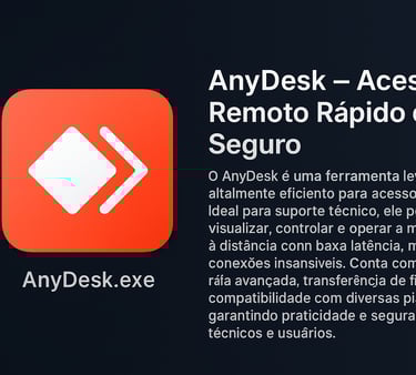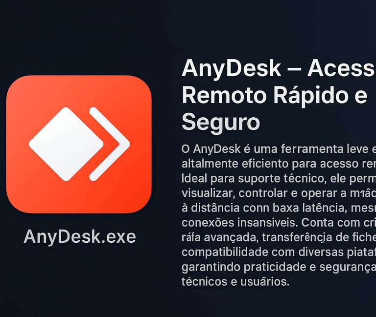 O AnyDesk é uma ferramenta leve e altamente eficiente para acesso remoto a computadores. Ideal para suporte técnico, ele permite visualizar, controlar e operar máquinas à distância com baixa latência, mesmo em conexões instáveis. Conta com criptografia avançada, transferência de arquivos integrada e compatibilidade com diversas plataformas, garantindo praticidade e segurança para técnicos e usuários.